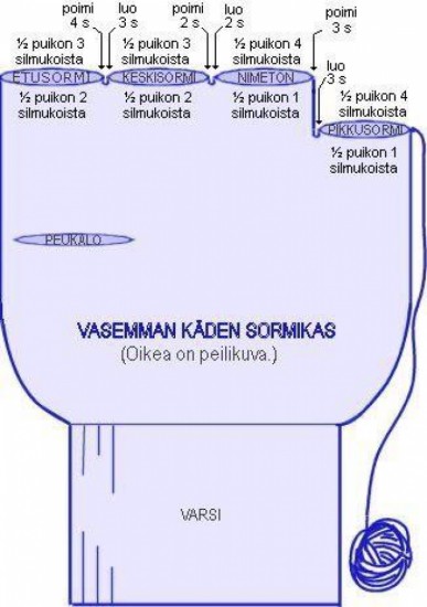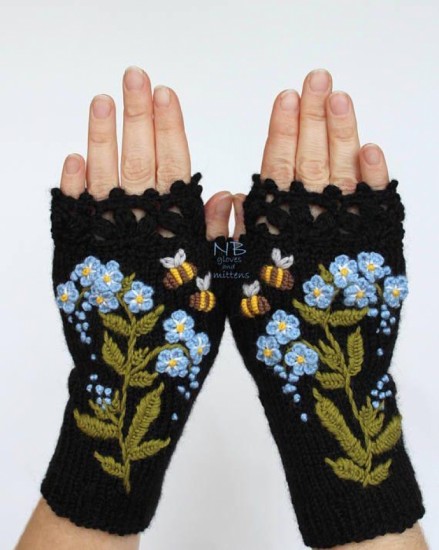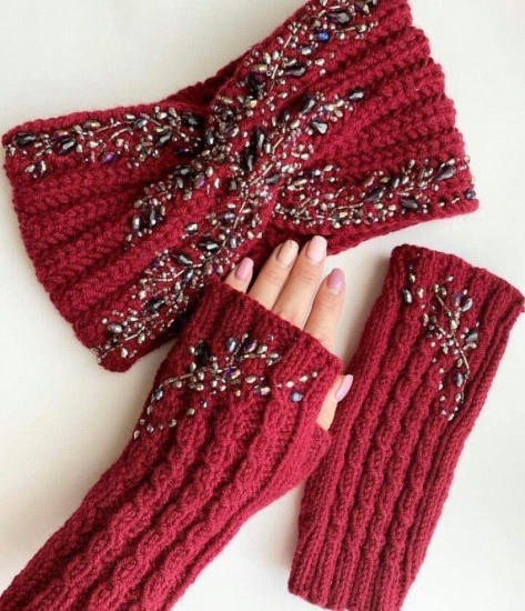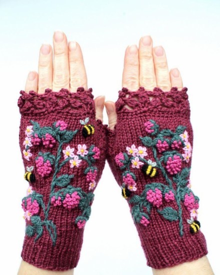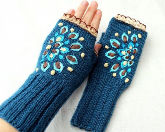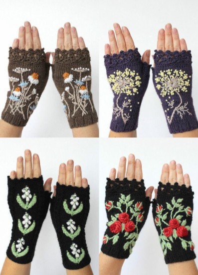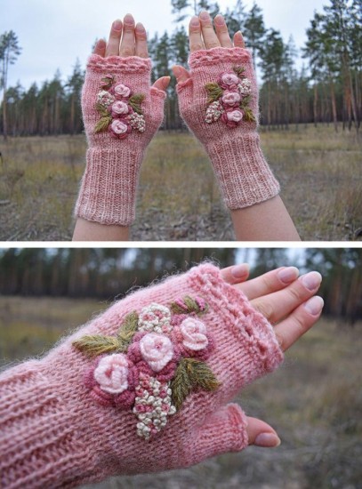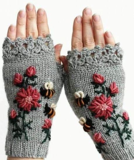 Decorate the modification, especially when they are placed on the parts of the knuckles and the back of the hand, you can even make figures as you can see in the example below, when you have the complete chain to cover the closed fingers with slip stitch, now a chain is regularly embroidered with half a stitch, the number of stitches is changed while creating this step and the beginning of the thumb is reached, now this finger should be closed.