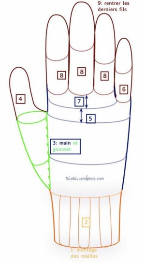 The patterns are made the other way around, first chains must be made that completely cover the fingers leaving the thumb outwards, for this use the measurements, for the same girls gloves are knitted, as are the colors and some figures are in steps