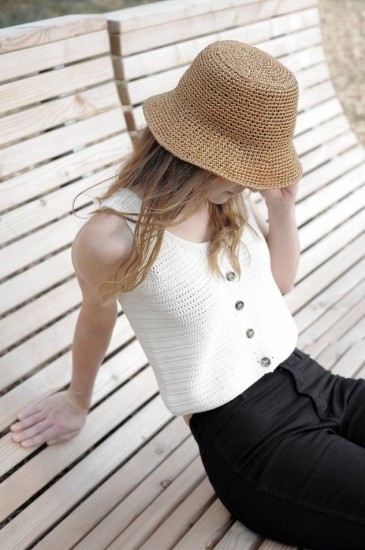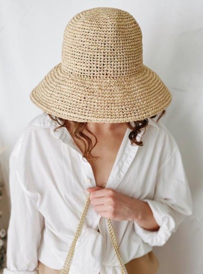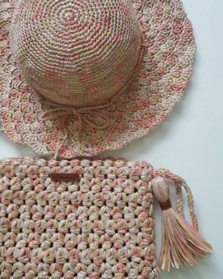 Hello ladies, If your choice for the crochet hat model is paper rope, it will be very useful in terms of its use as a fabric, the paper rope will not sweat in summer and the crochet fabric will be simple and elegant. You can also apply the ornament that you applied to the hat on the bag. Dear weaving lovers, it would be a good choice to use raffia rope with colorful flowers for decorative art. In this way, you will have a nice harmony between the bag and the hat.