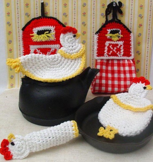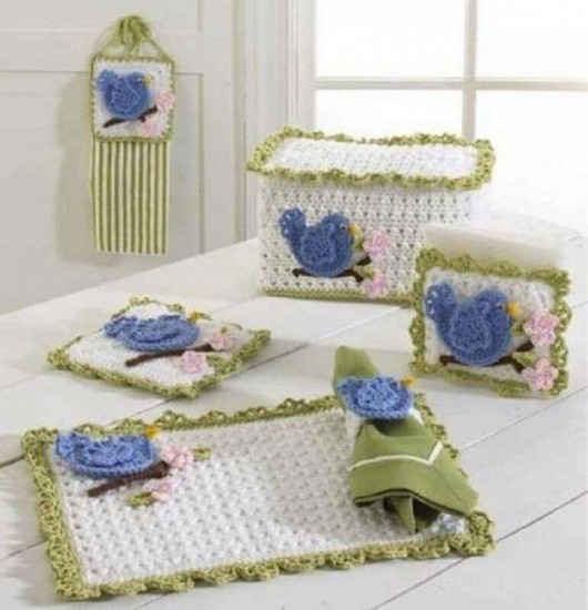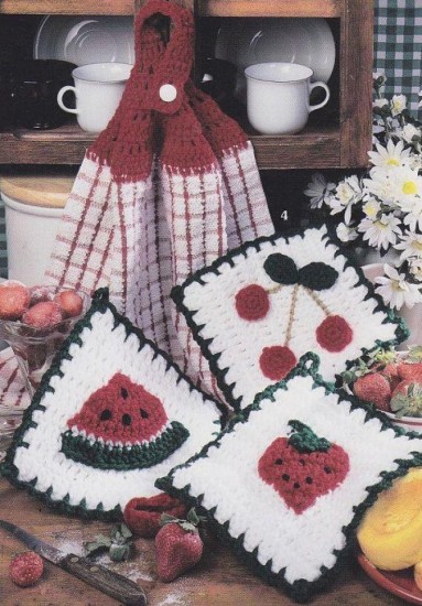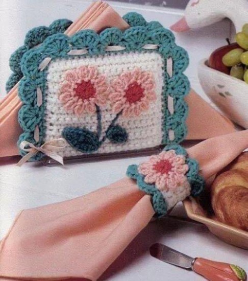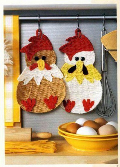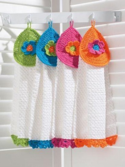 Embroidered or crocheted colored towel models are still embroidered in the gazelle of our girls to marry. and Something very regular that is done with a crochet fabric is to line recycled jars, where spices are kept for cooking, this type of ornaments are very traditional, the designs are varied, original, fun and witty.nother type of crochet kitchen ornaments are magnets that serve as rags hangers, these are also classic, they can be based on many figures from fruits to a knife or fork.