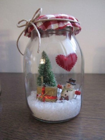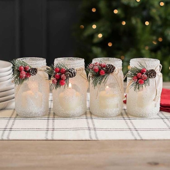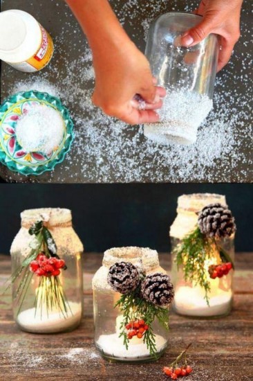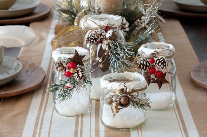 Knowing how to sew and knit can be a good advantage, but even if you don't know it, you can easily do it with these materials. If they ask you what is the most beautiful decorative object of the winter months, I think our answer would be snowball chandeliers and an elegant dining table ... if it is also snowing ... how would you like to make a candle with Christmas themed holders for the dining room table like me? Make a winter-themed candleholder from a jar.