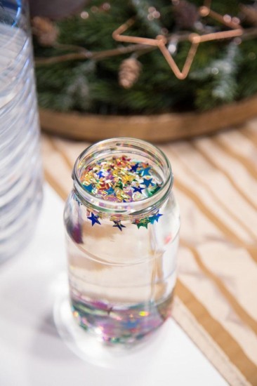 Before starting the process, first we wash and dry the glass jar well, because I'm sure you don't want it to leave a stain when the decoration is finished? After drying your jug, you can fill the jug with artificial snow as much as you like. In this section, you can decide the distance from the snow. Wouldn't it be nice if you put a miniature pine tree inside and a sleigh next to Santa Claus ...? You can create an atmosphere like snowing from the cover part with the help of fishing line and glue to make snowflakes as in the photo. When you use artificial snow, you don't need any additional glue, it just sticks where it touches. Later in this study, a little epson, bath salt, was also added on top of the snow. Necessary? Of course not, just a small detail of your preference :)