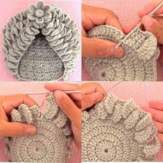 SEPARATE FIGURES AND IDEAS IN 3D CROCHET HATS The flowers, ears and eyes are elements that are easily woven and crocheted hats are usually placed for children, many works are based on well-known characters, such is the case of Mickey Mouse, where the ears with large circles that are woven very Similar to hat starting points, colorful flowers are perfect for girl's plays. To continue with our example, the fourth row is again three double crochet chains, next double crochet without increase, two double crochets without increases and third two double crochets on the same place, this is the sequence.