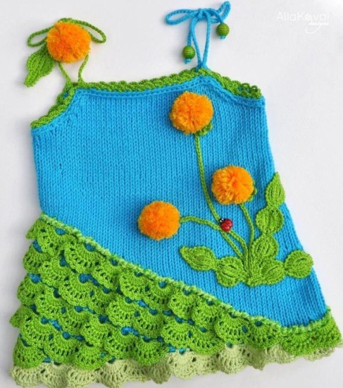 When we take a general look at the models of knitted dresses for children and babies of 2016, we see the predominance of the color white. This special color, which is the color of innocence and purity, can be worn alone or combined with vibrant colors. We see that small motifs created with ribbons, tulle, beads, sequins or weaving techniques are used to decorate the models of knitted dresses for girls woven in plain white or any other color tone. If you are going to knit one of these special models, you can choose one of these details according to your taste, and you can prepare elegant and colorful dresses for your children. To give movement to the dresses to knit with solid colors, you can also embroider pleats or ruffles with another color