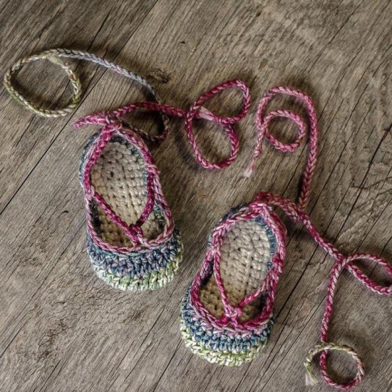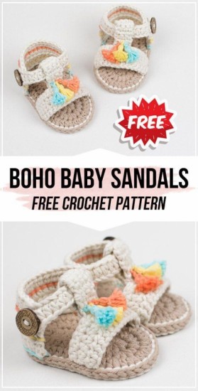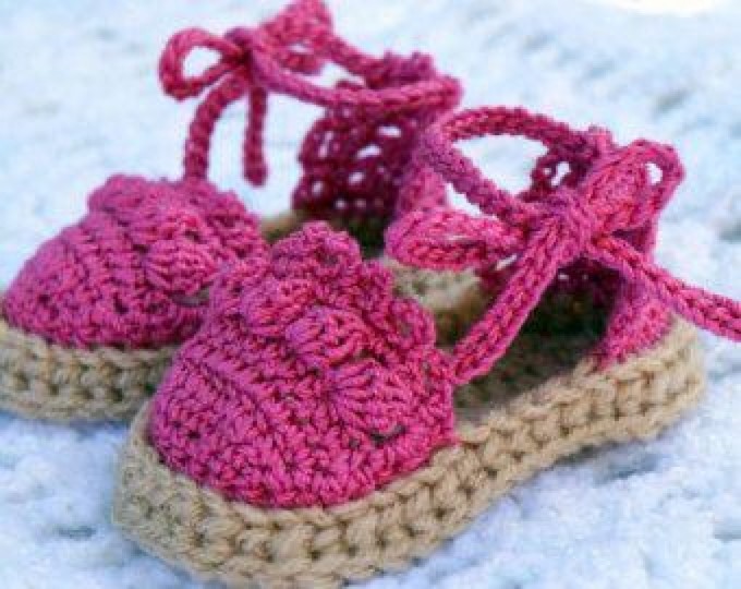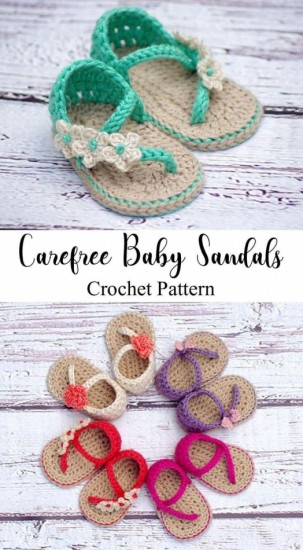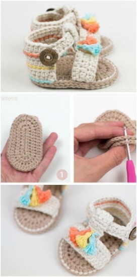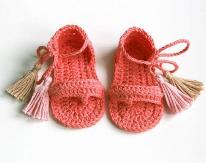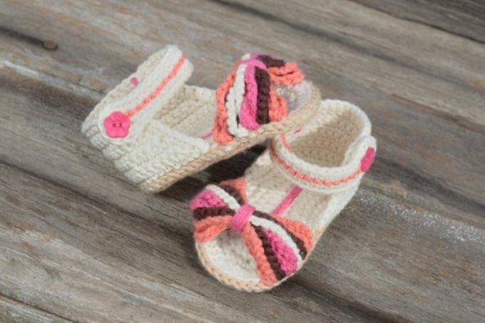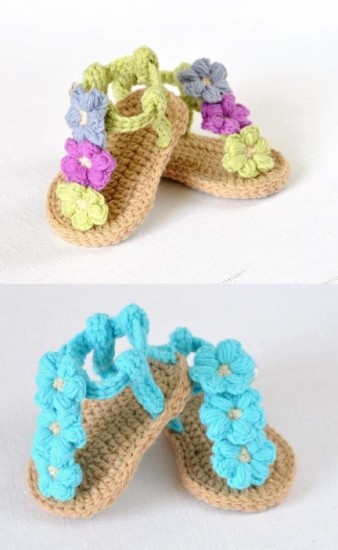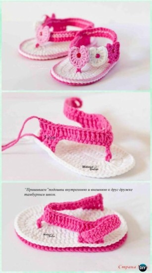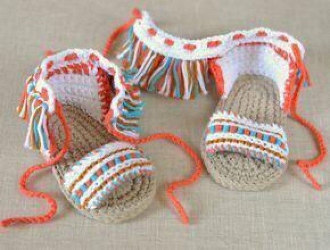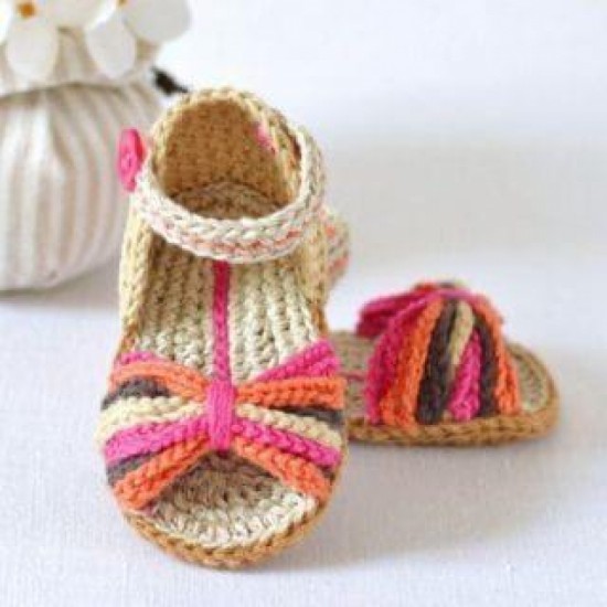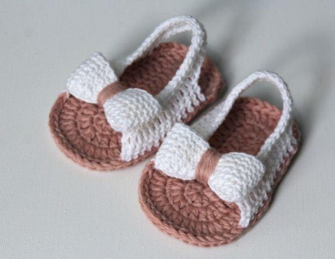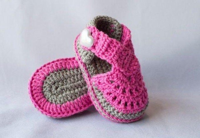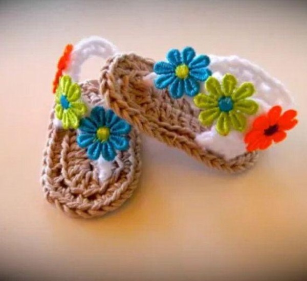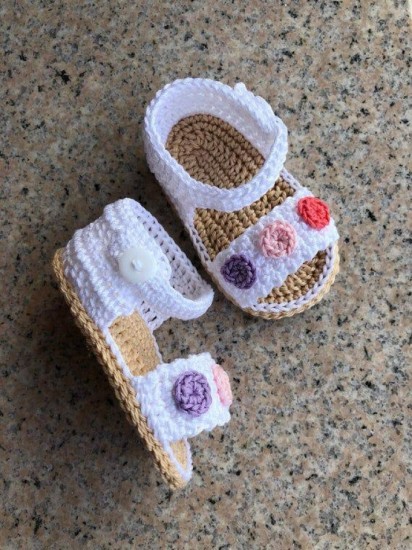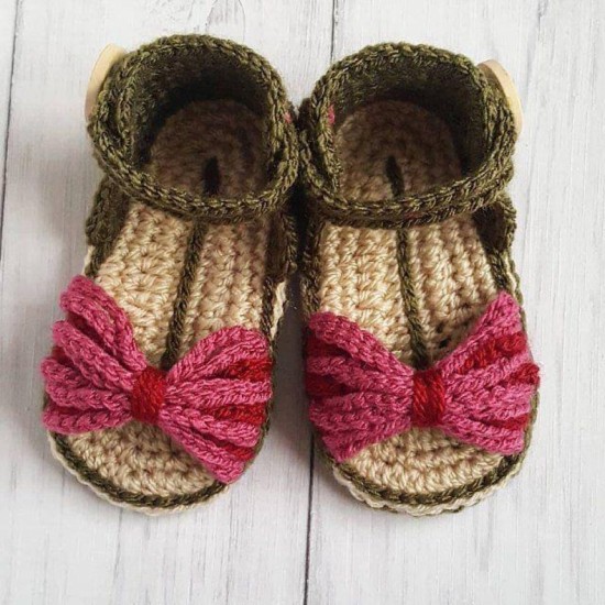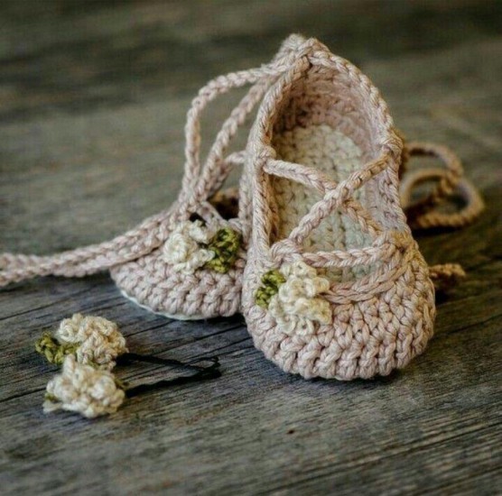 The common point of all is that to give the base piece the necessary hardness, the wool of very tight and thick fabrics should be preferred. To make crochet templates, you need to start knitting with a base chain by measuring the girls' feet, then half crochet or half crochet, then double crochet and increase them to give them an oval shape. For example, for closed-toe sandals, double crochet stitches, two fan semicircles, and lace are knitted. These will be part of the toes and heels that you must fix with slip points on the sole or sole of the foot. Add some lace ribbons to attach to the ankle and flower ribbons to decorate.