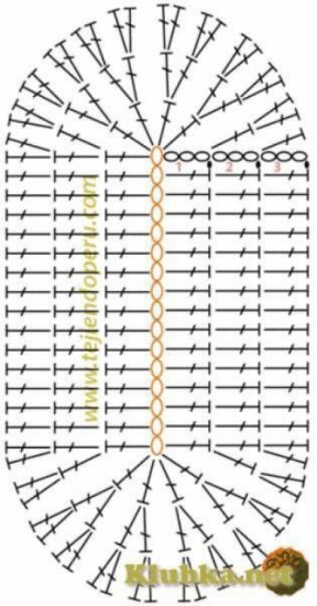 In the photograph, the dense needle, the circles signify the chain, the single handrail, and the long line signify the handrail. After pulling our chain, we knit both sides. After knitting 4 bases, we join 2 strands and 2 strand bases to each other with colored yarn with a loop change. Our soles will look the same from the front and the back.
