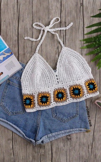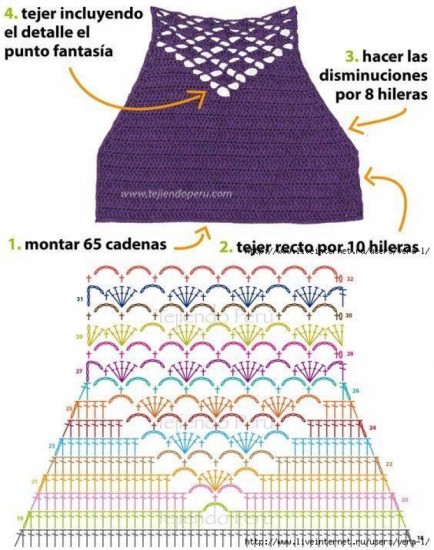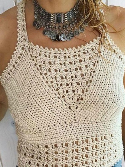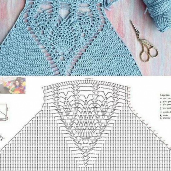 And although they all have a different length, they differ in the cut of their necks. Among those that you can see in the photos are the halter neck to tie at the neck and the round neck with neckline at the back. THE PATTERNS For the elaboration of these you can be guided by graphics of crochet tops indicated in each photo. The important thing is that you know the symbols of the most basic crochet stitches. Among them are fans, double crochet, half double crochet, openwork and picot.