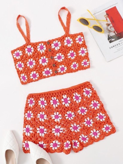 Also, you must bear in mind that the patterns show one of the two symmetrical parts that make up each face of the top. These being the same, they can be done taking into account how one of the two halves is made, as you see in the images. It should be clarified that although only one of the two equal halves that make up the face of the crop top is explained in the patterns, these must be knitted in one piece repeating the pattern from side to side. Also, it is important that you sew the sides of the chest and back in each of the tops. These are made with slipped crochet stitches