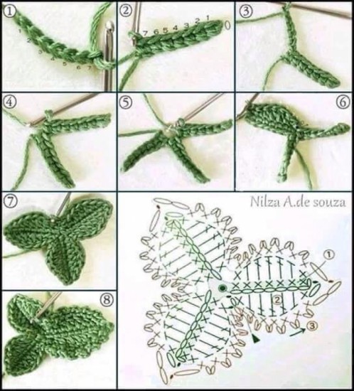 You can continue step by step by getting the support of the photos in the gallery. Chain stitch How to make a triple double crochet? ... Following the steps in the image, the first thing to do is knit a chain, we will knit three double crochets in that chain, close it with a chain around the contour, and repeat the same process on the opposite side. as well as shaping it. If you are new to crochet, this will look like crochet leaf designs.