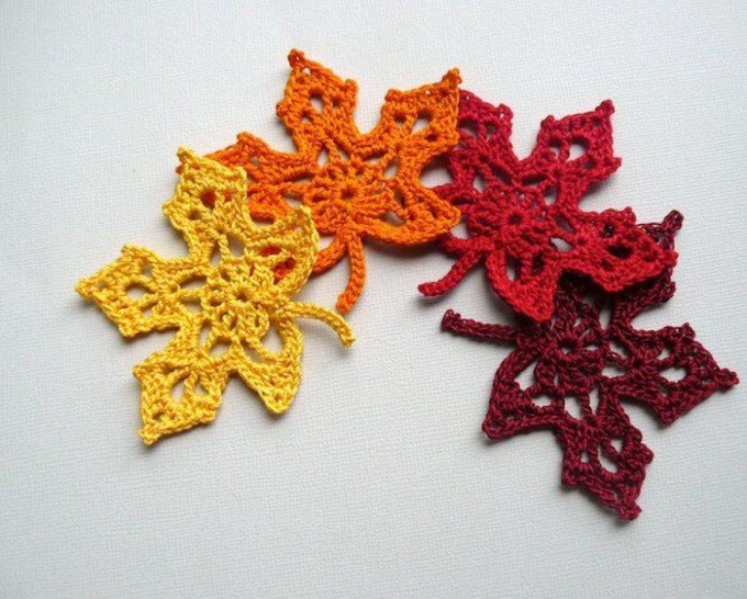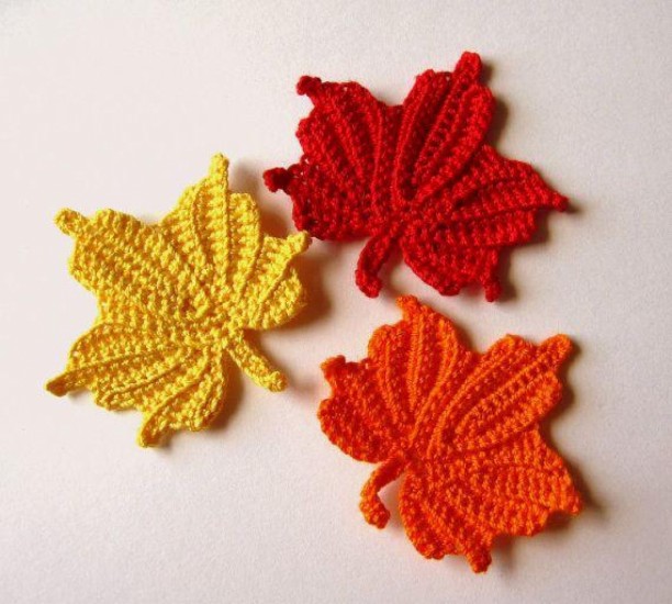 As a first step, we know how to pull a chain and if we believe a little, we think about what we can do. To knit by hand crochet The wool can be the color of your choice (yellow, orange and red) Hook Scissors ... Chain stitch Double crochet Hoop end Double triple crochet how to do The way to do it is very simple, first we will knit the ring stitch made with a chain loop with double crochet stitches, then we will shape it with triple double crochet stitches. This leaf pattern is quite similar to the previous one and they are seen in the fall season.