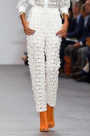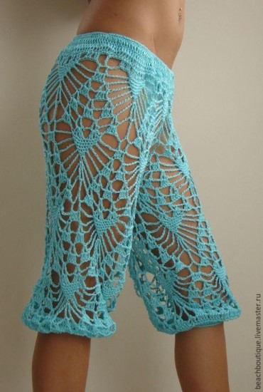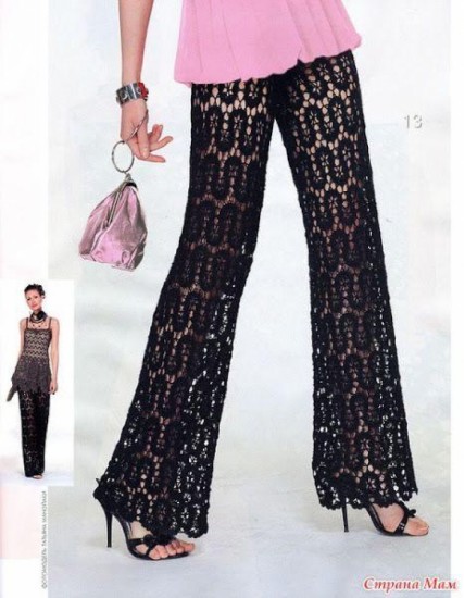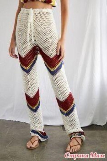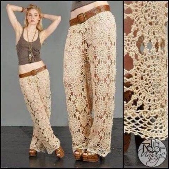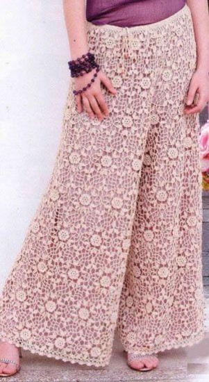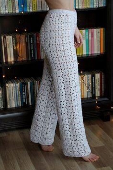 The latest trouser design is woven in white with net dots and rosettes with openwork dots and fans. For the waistband, a rubber thread is invisibly adhered to the inside and a woven cord with chain stitches is added. This cord is sandwiched between the points of the waistband. As well as these pants for women you can find many ideas to knit clothing for everyone. For example, you can find knitted dresses or pants for babies by clicking on knitted baby outfits and newborn baby outfits. Do not stop visiting us! ...