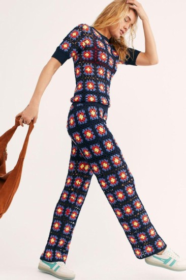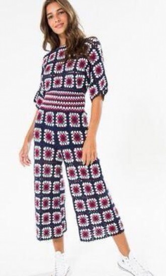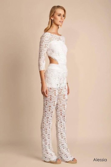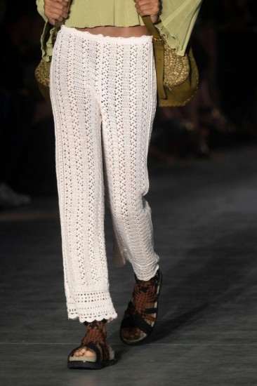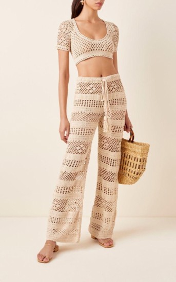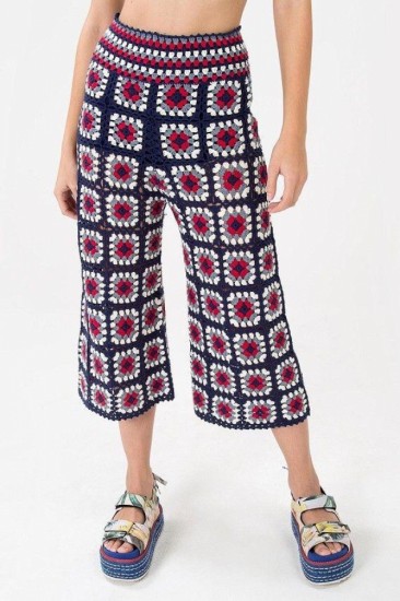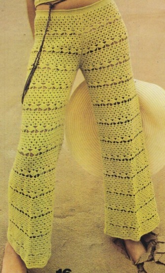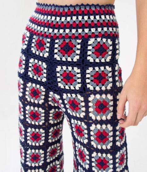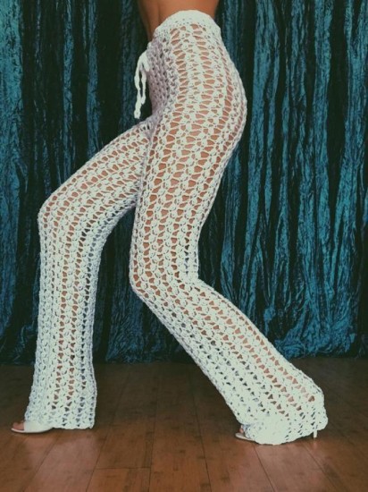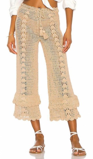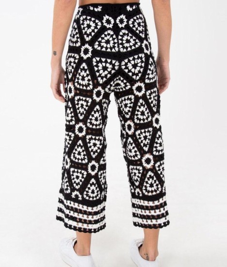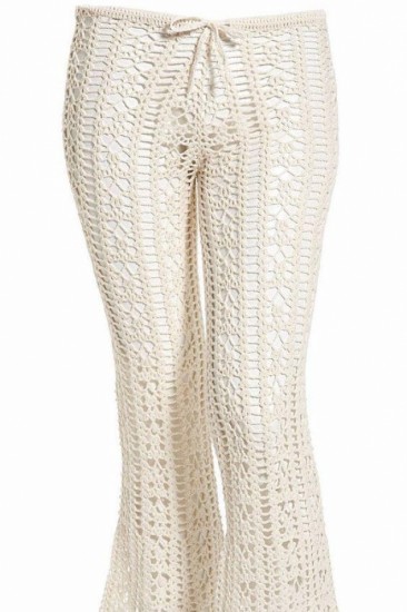 NET KNITTED TROUSERS In addition to the trousers woven with the granny square technique, you have the following two models of trousers woven in net stitches. These would be more associated with the beach style for its lightness and freshness.
