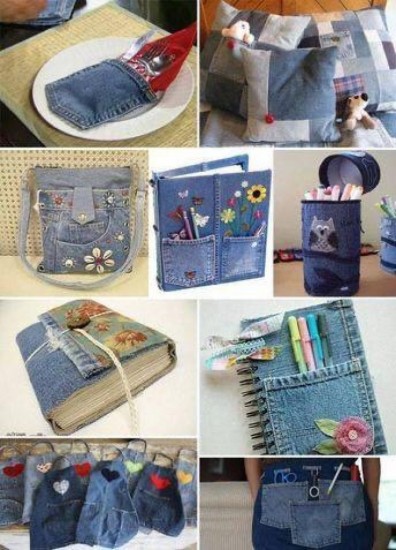 What are made of old jeans? How can you evaluate it in home decoration, garden decoration, decoration of living spaces, decoration of bathrooms and children's rooms. You can try designs as accessories: necklaces, bracelets, buckles and tiaras. There are many ideas such as sandals, belts, skirts and denim dresses.