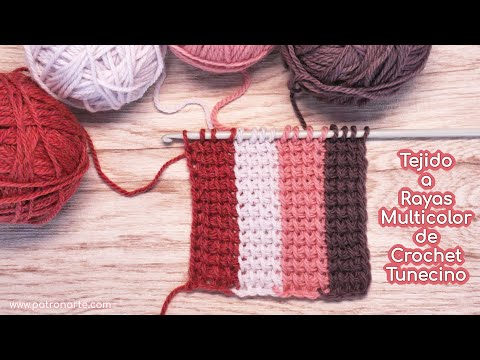 Aprende con este vídeo Cómo Tejer Rayas Verticales Multicolor de Crochet Tunecino Paso a Paso. Puedes ver más detalles sobre este y otros tutoriales en https://patronarte.com/tutoriales