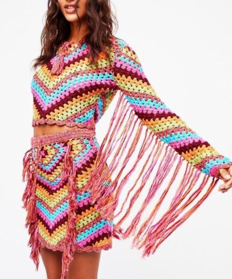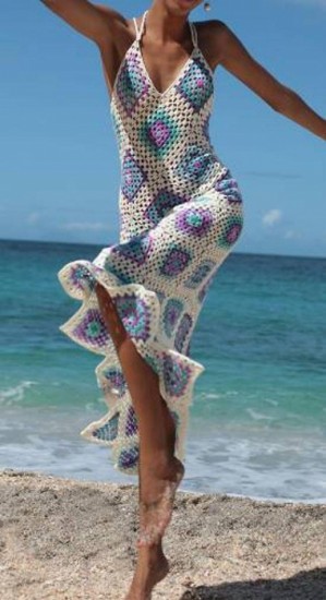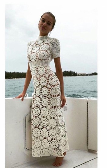 Frequently used technique for some models: the top is a beautiful pattern of lace patterns, the bottom is a beautiful model with chains. You can also knit and wear separately. Or you can wear it as a whole, as in the knitted dress examples.
