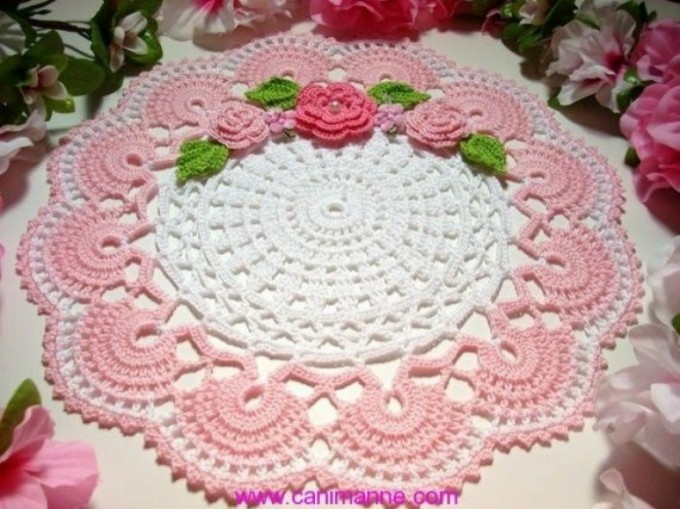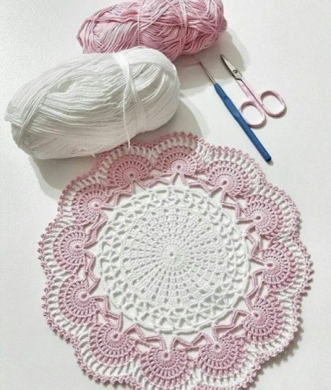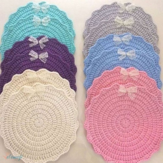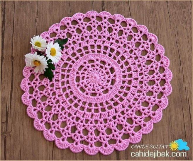 The way to start with this decorative and functional element is to weave some chains to weave a magic ring. On this the fabric is followed in a circular direction with the desired points. Among those you find in the photos are half double crochet, chains forming openwork points and double crochet.